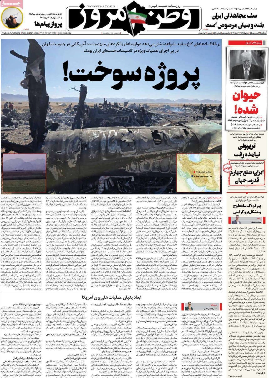 On April 5, Trump announced on social media that a U.S. attempt to rescue a downed F-15 pilot near Isfahan had succeeded. The IRGC’s joint operational command Khatam al-Anbiya, Iran’s wartime military headquarters, said that Washington had in fact lost multiple aircraft during the attempt, claiming two C-130 transports and two Black Hawk helicopters had been destroyed. Within hours, Tasnim was publishing photos of what it called U.S. aircraft wreckage as proof, while Russian coverage ran the Iranian version with the headline “The enemy’s efforts failed.”