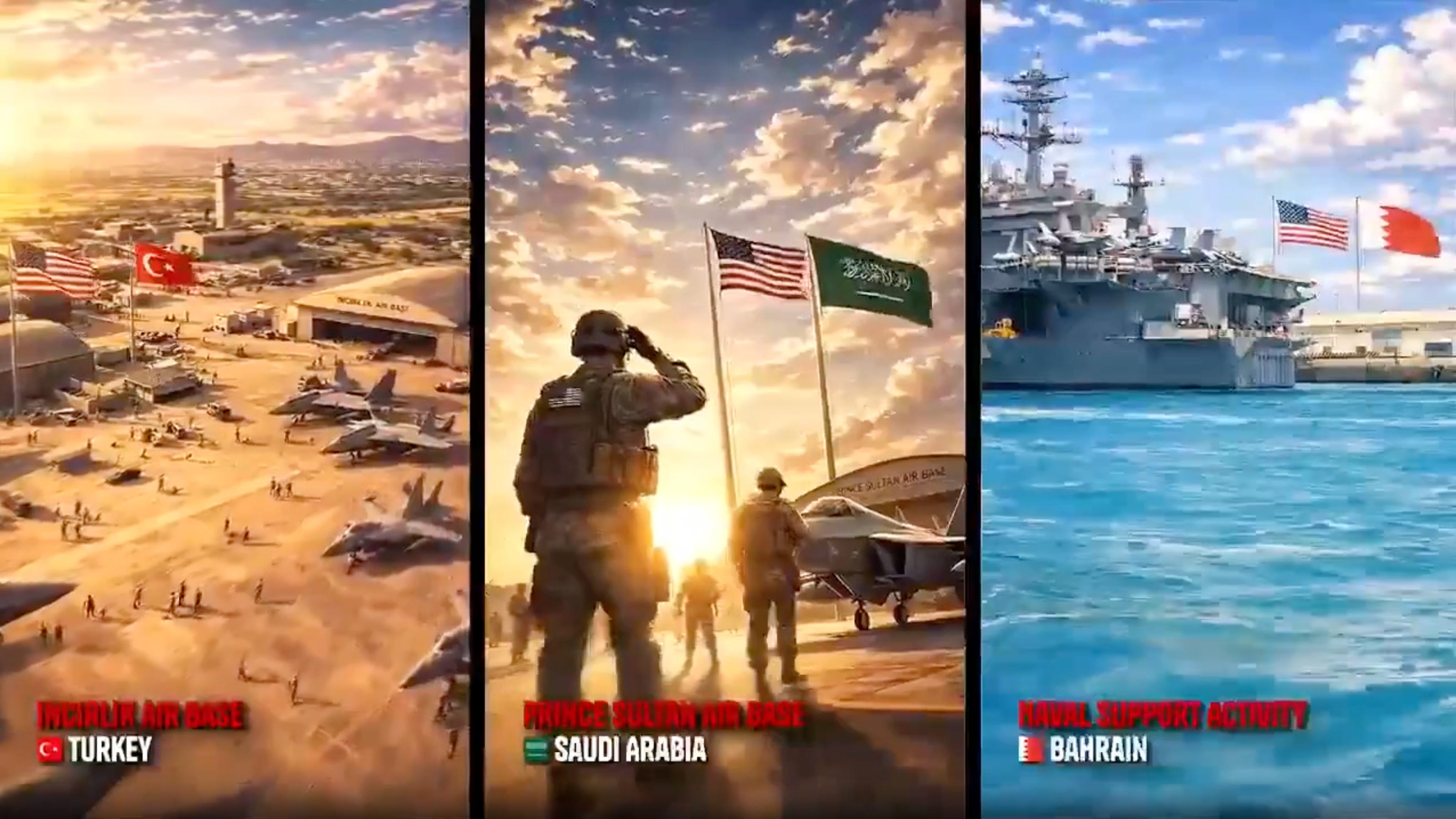 When we first reported this clip in February, what stood out was the manner in which it was published, because an anime is not a serious war plan. It’s a fantasy. But it was still concerning given that it was meant as a deterrence signal and a showcase of capacity, even if that capacity is exaggerated. Look at the target list. Incirlik is on there, which means Turkey is on there. Turkey spent the last year signaling diplomatic independence, hosting backchannels, positioning itself as a mediator, and none of that mattered because it hosts a U.S. air base. That’s what earned it a spot on Iran’s targeting map. The animation shows ballistic missiles hitting Turkish territory, and in March 2026, real ones flew.