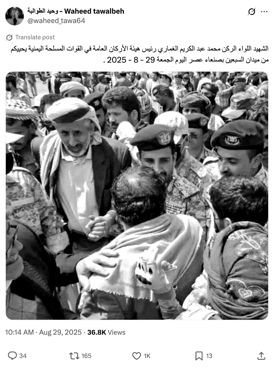 Meanwhile, Tehran’s condolences for al-Ghamari made the hierarchy explicit. Iranian Chief of Staff Abdul Rahim Mousavi praised him for his “strategic role in defending the honor and independence of the Yemeni people and supporting the Palestinian cause,” mourning him not as a Yemeni leader serving Yemen, but as an implementer of a regional resistance strategy directed from Tehran. Yet for the Islamic Republic of Iran, which had suffered multiple high-profile losses across the Axis of Resistance, al-Ghamari’s death was not operationally consequential—they knew he was replaceable. He was a pawn, not a bishop, and the system had already produced his successor