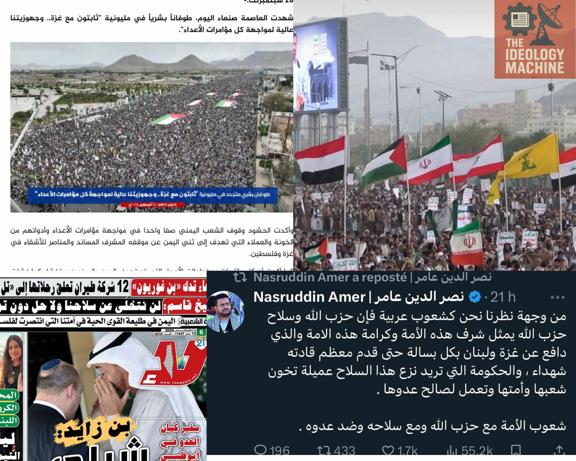 Various media and social media snippets of Houthis amplifying Hezbollah’s disarmement objections.